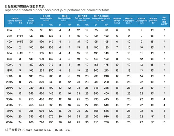 二、JIS日标橡胶防震接头参数介绍: